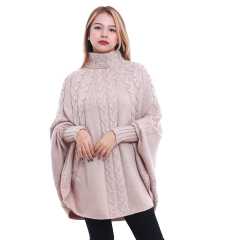 Kadın 100% Pashmina kaşmir kablo örgü kazak elbise yeni Model sürdürülebilir boy kış isıtıcı kaplumbağa boyun panço tarzı